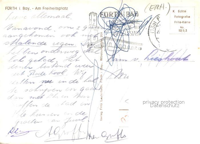 73739250 alte Postkarte Fuerth Bayern Am Freiheitsplatz postalisch gelaufen Erhaltung siehe scans [LiesaD40] KatCode: 11110009563000