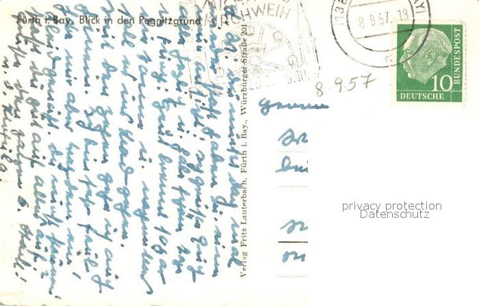 73143017 alte Postkarte Fuerth Bayern Blick in den Pegnitzgrund postalisch gelaufen Erhaltung siehe scans [FriedD77] KatCode: 11110009563000