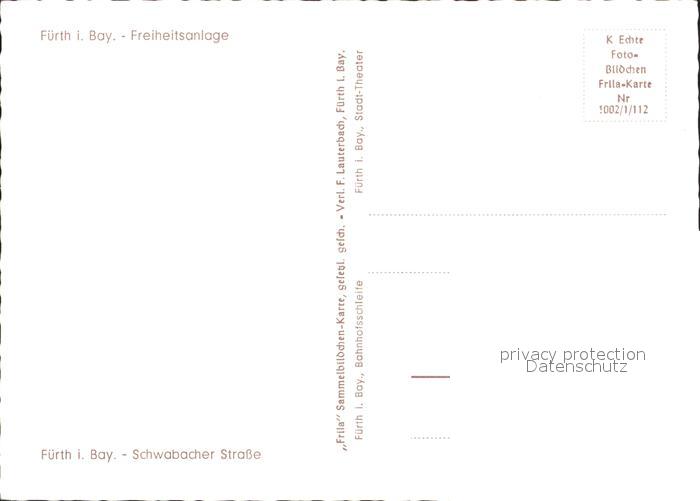 71988178 Fuerth Bayern Freiheitsanlage postalisch nicht gelaufen Erhaltung siehe scans KatCode: 11110009563000