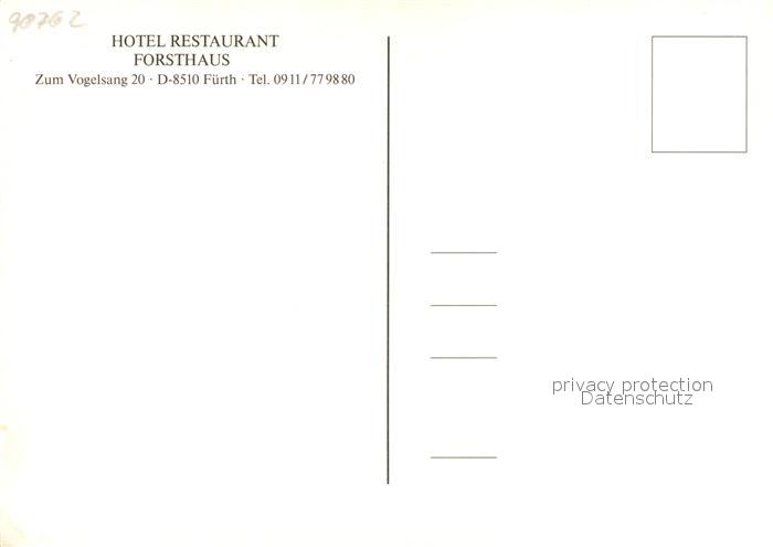 73541327 Fuerth Bayern Hotel Restaurant Forsthaus postalisch nicht gelaufen Erhaltung siehe scans [KathaD81] KatCode: 11110009563000