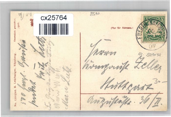 30826916 alte Postkarte Fuerth Bayern inder postalisch gelaufen KatCode: 11110009563000