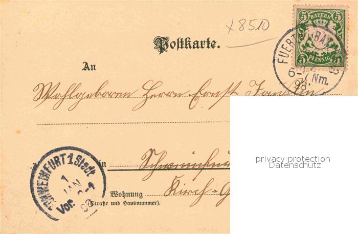 42880572 alte Postkarte Fuerth Bayern Kunstbrunnen Freimaurerloge postalisch gelaufen Erhaltung siehe scans [KathaD81] KatCode: 11110009563000