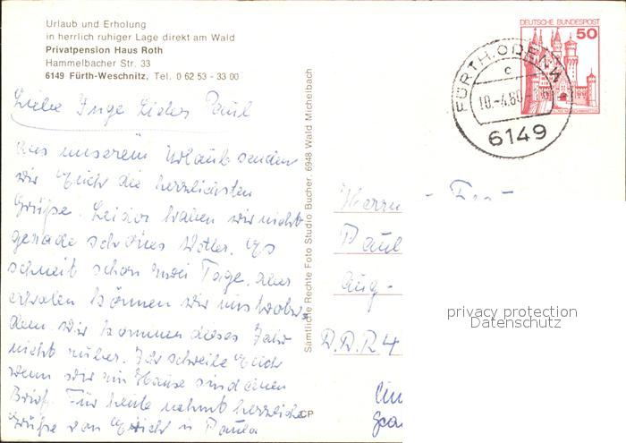 71909285 alte Postkarte Fuerth Bayern Privatpension Haus Roth postalisch gelaufen Erhaltung siehe scans KatCode: 11110009563000