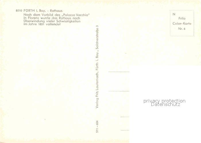 72904645 Fuerth Bayern Rathaus postalisch nicht gelaufen Erhaltung siehe scans [FriedD77] KatCode: 11110009563000