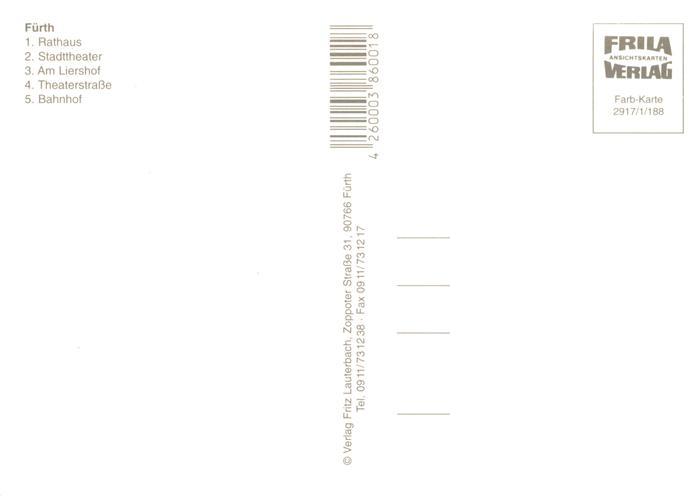 73901172 Fuerth Bayern Rathaus Stadttheater Am Liershof Theaterstrasse Bahnhof postalisch nicht gelaufen Erhaltung siehe scans [FriedD77] KatCode: 11110009563000