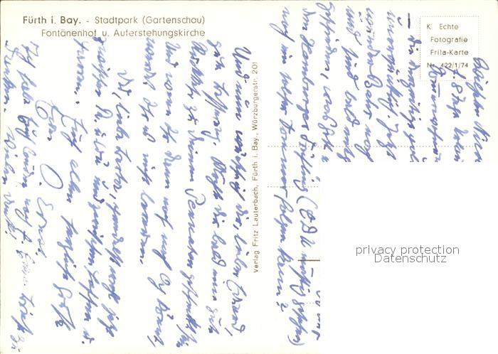 72229820 Fuerth Bayern Stadtpark Fontaenenhof Auferstehungskirche postalisch nicht gelaufen Erhaltung siehe scans KatCode: 11110009563000
