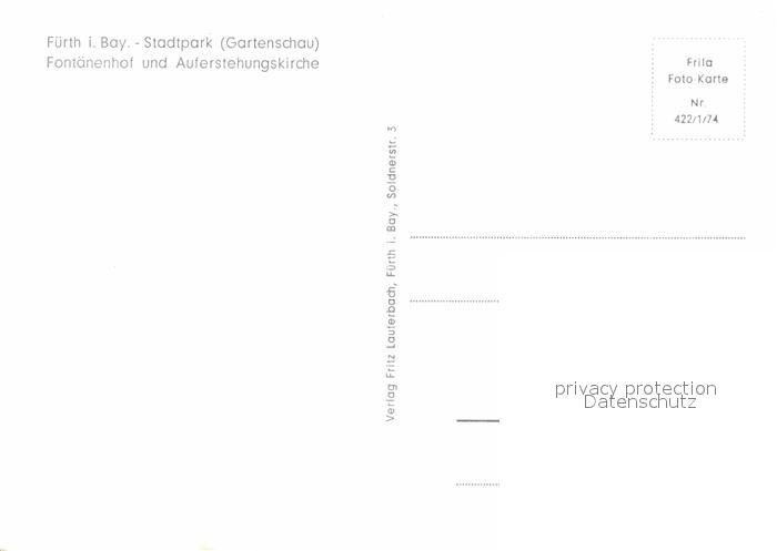 72898727 Fuerth Bayern Stadtpark Fontaenenhof Auferstehungskirche postalisch nicht gelaufen Erhaltung siehe scans [PaolaD17] KatCode: 11110009563000
