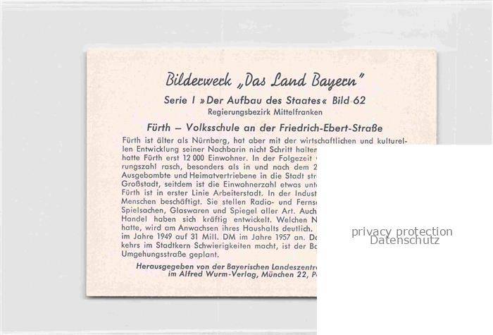 FueRTH Bayern Volksschule an der Friedrich Ebert Strasse postalisch nicht gelaufen Werbekarte (keine Postkarte) Erhaltung siehe scans [WerneD78] Werbekarte (keine Postkarte) Wern Katcode 11110009563000