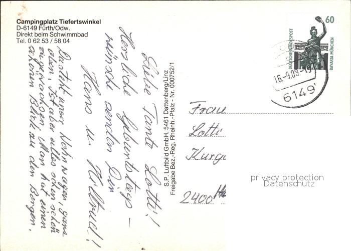 72223319 alte Postkarte Fuerth Odenwald Campingplatz Tiefertwinkel Fliegeraufnahme postalisch gelaufen Erhaltung siehe scans KatCode: 11110006431007
