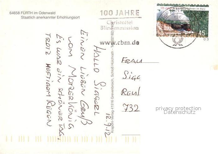 73257445 alte Postkarte Fuerth Odenwald Kirche Markt Fachwerkhaeuser Rathaus Stadtpanorama postalisch gelaufen Erhaltung siehe scans [FriedD77] KatCode: 11110006431007