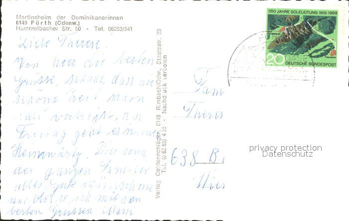 72096992 alte Postkarte Fuerth Odenwald Martinsheim der Dominikanerinnen Saal Treppenaufgang Ortsansicht postalisch gelaufen Erhaltung siehe scans KatCode: 11110006431007