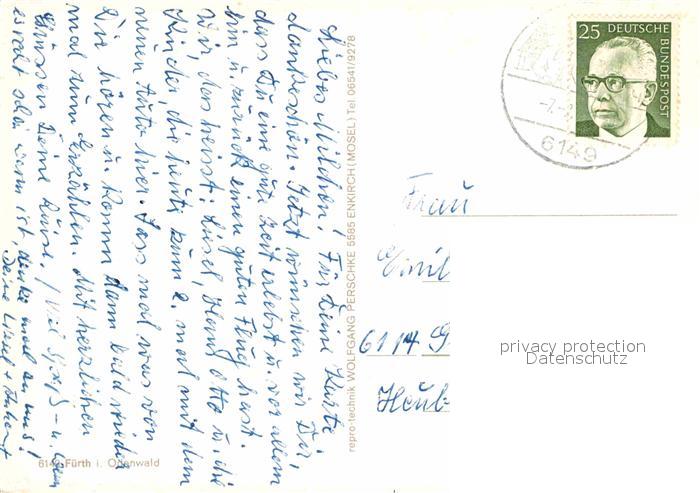 72776530 alte Postkarte Fuerth Odenwald Panorama postalisch gelaufen Erhaltung siehe scans [KathaD81] KatCode: 11110006431007