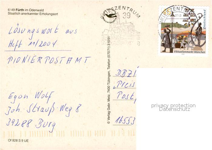 73840783 alte Postkarte Fuerth Odenwald Panorama Erholungsort Altstadt Fachwerkhaus postalisch gelaufen Erhaltung siehe scans [FriedD77] KatCode: 11110006431007