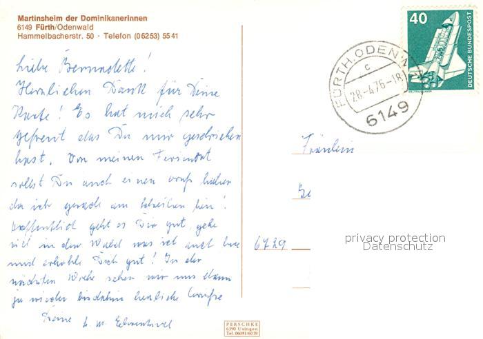 73257448 alte Postkarte Fuerth Odenwald Stadtpanorama postalisch gelaufen Erhaltung siehe scans [FriedD77] KatCode: 11110006431007