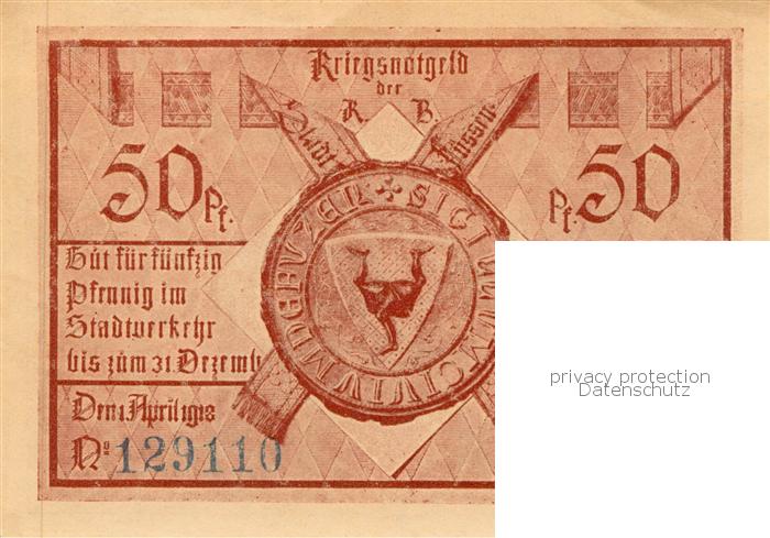 73800442 Fuessen Allgaeu 50 Pfennig Schein Motiv Hydra postalisch nicht gelaufen Notgeldschein (keine Postkarte) Erhaltung siehe scans [WerneD78] KatCode: 11110009777129
