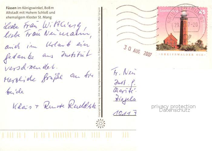 73776029 alte Postkarte Fuessen Allgaeu Altstadt mit Hohem Schloss und ehem Kloster St Mang Fliegeraufnahme postalisch gelaufen Erhaltung siehe scans [WerneD78] KatCode: 11110009777129