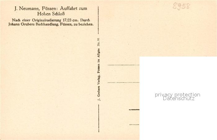 73374763 Fuessen Allgaeu Auffahrt Hohes Schloss Kuenstlerkarte postalisch nicht gelaufen Erhaltung siehe scans [KathaD81] KatCode: 11110009777129