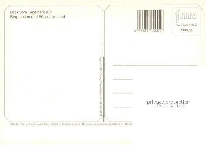 73755567 Fuessen Allgaeu Blick vom Tegelberg auf Bergstation und Fuessener Land postalisch nicht gelaufen Erhaltung siehe scans [FriedD77] KatCode: 11110009777129