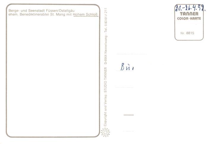 73909456 Fuessen Allgaeu Ehem Benediktinerabtei St Mang mit Hohem Schloss postalisch nicht gelaufen Erhaltung siehe scans [WerneD78] KatCode: 11110009777129