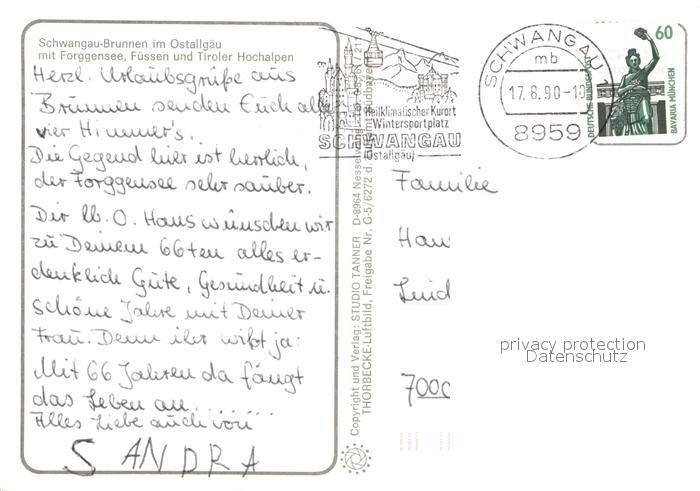 72943886 alte Postkarte Fuessen Allgaeu Fliegeraufnahme postalisch gelaufen Erhaltung siehe scans [KathaD81] KatCode: 11110009777129