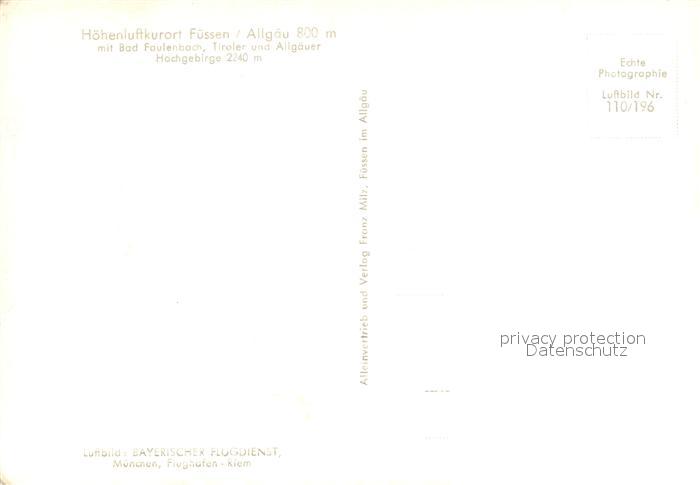 73669059 Fuessen Allgaeu Fliegeraufnahme mit Bad Faulenbach Tiroler und Allgaeuer Hochgebirge postalisch nicht gelaufen Erhaltung siehe scans [WerneD78] KatCode: 11110009777129