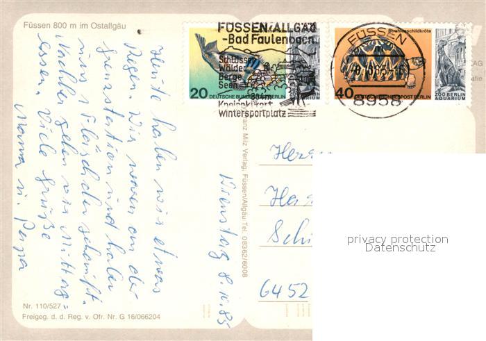 73056251 alte Postkarte Fuessen Allgaeu Fliegeraufnahme mit Wettersteingebirge postalisch gelaufen Erhaltung siehe scans [WerneD78] KatCode: 11110009777129