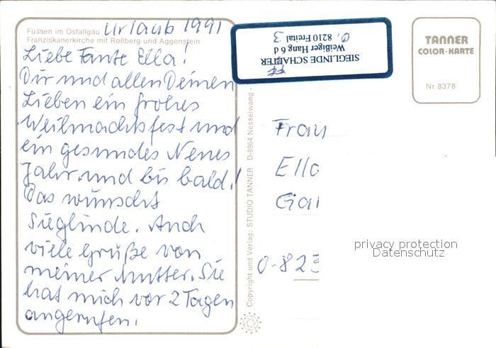 72420308 Fuessen Allgaeu Franziskanerkirche Rossberg Aggenstein postalisch nicht gelaufen Erhaltung siehe scans KatCode: 11110009777129