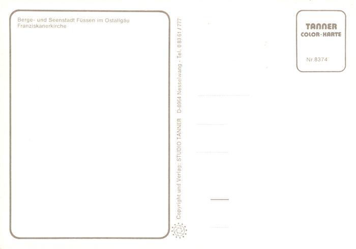 73909463 Fuessen Allgaeu Franziskanerkirche postalisch nicht gelaufen Erhaltung siehe scans [WerneD78] KatCode: 11110009777129