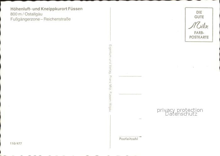 72406166 Fuessen Allgaeu Fussgaengerzone Denkmal Strassencafe postalisch nicht gelaufen Erhaltung siehe scans KatCode: 11110009777129