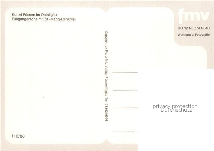 73857433 Fuessen Allgaeu Fussgaengerzone mit St Mang Denkmal postalisch nicht gelaufen Erhaltung siehe scans [WerneD78] KatCode: 11110009777129