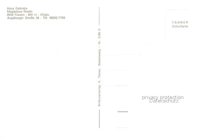 73726242 Fuessen Allgaeu Gaestehaus Pension Haus Gabriele Schloss Neuschwanstein Forggensee Alpen postalisch nicht gelaufen Erhaltung siehe scans [FriedD77] KatCode: 11110009777129