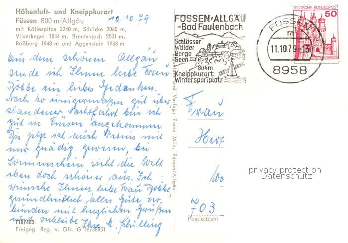 73790211 alte Postkarte Fuessen Allgaeu Gesamtansicht mit Alpenpanorama See postalisch gelaufen Fliegeraufnahme Erhaltung siehe scans [FriedD77] KatCode: 11110009777129
