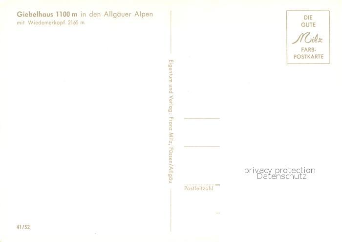 73741938 Fuessen Allgaeu Giebelhaus in den Allgaeuer Alpen mit Wiedemerkopf postalisch nicht gelaufen Erhaltung siehe scans [FriedD77] KatCode: 11110009777129