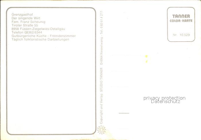 72108648 Fuessen Allgaeu Grenzgasthof Der singende Wirt postalisch nicht gelaufen KatCode: 11110009777129