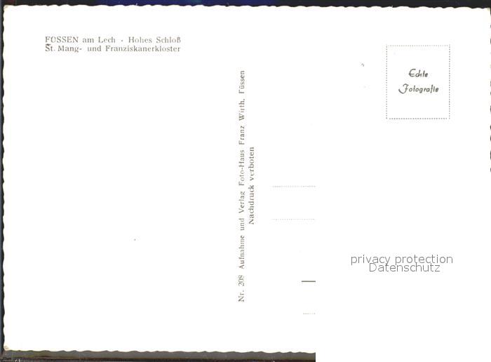 71838912 Fuessen Allgaeu Hohes Schloss St Mang und Franziskanerkloster Alpen postalisch nicht gelaufen Erhaltung siehe scans KatCode: 11110009777129