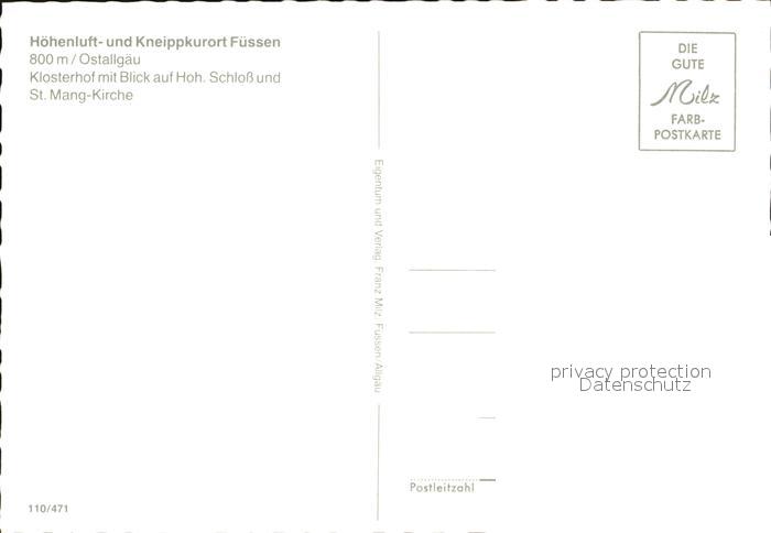 72453820 Fuessen Allgaeu Klosterhof Kloster St Mang Hohes Schloss postalisch nicht gelaufen Erhaltung siehe scans KatCode: 11110009777129