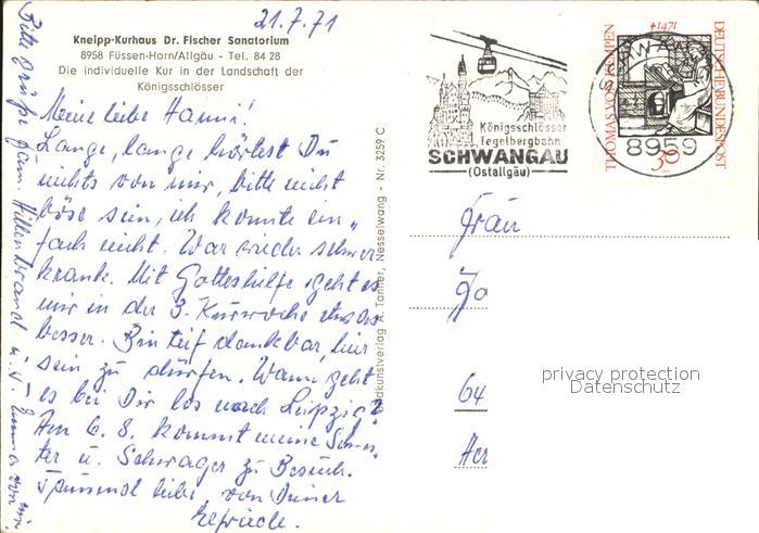 alte Postkarte Fuessen Allgaeu Kneipp Kurhaus Dr Fischer Sanatorium Alpen postalisch gelaufen Erhaltung siehe scans
