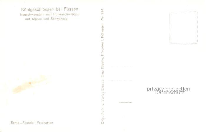 73800745 Fuessen Allgaeu Koenigsschloesser Neuschwanstein und Hohenschwangau mit Alpsee und Schwansee Fliegeraufnahme postalisch nicht gelaufen Erhaltung siehe scans [WerneD78] KatCode: 11110009777129