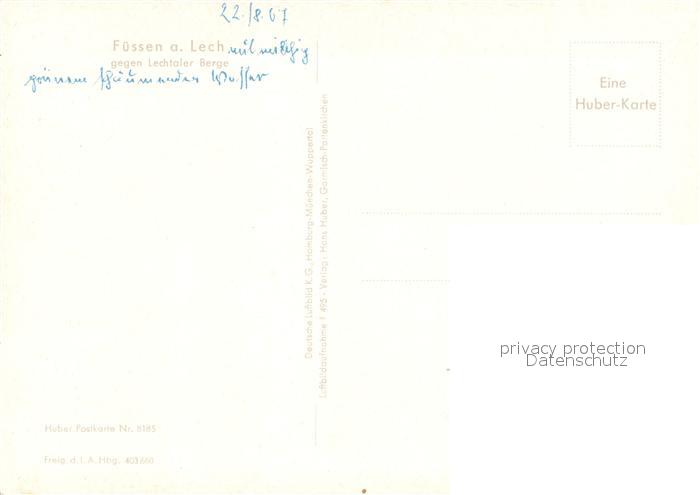 73720188 Fuessen Allgaeu Koenigswinkel Stadtzentrum Alpenpanorama gegen Lechtaler Berge Huber Karte Nr 8185 postalisch nicht gelaufen Erhaltung siehe scans [FriedD77] KatCode: 11110009777129