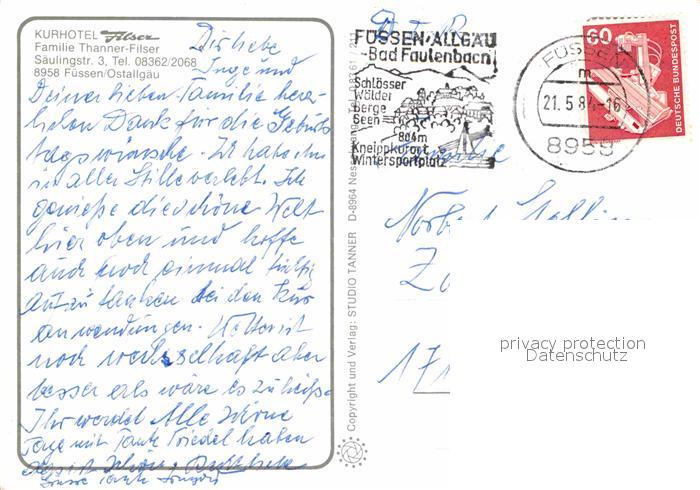 72841681 alte Postkarte Fuessen Allgaeu Kurhotel Filser postalisch gelaufen Erhaltung siehe scans [LiesaD40] KatCode: 11110009777129