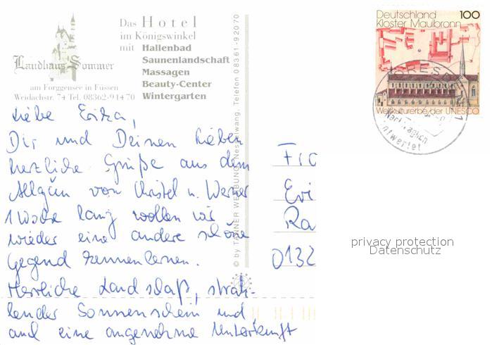72772219 alte Postkarte Fuessen Allgaeu Landhaus Sommer postalisch gelaufen Erhaltung siehe scans [AndreD76] KatCode: 11110009777129