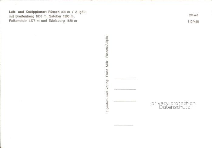 72453819 Fuessen Allgaeu Lech Hohes Schloss Allgaeuer Alpen postalisch nicht gelaufen Erhaltung siehe scans KatCode: 11110009777129