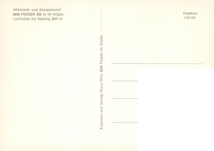 73909461 Fuessen Allgaeu Lechhalde mit Saeuling postalisch nicht gelaufen Erhaltung siehe scans [WerneD78] KatCode: 11110009777129