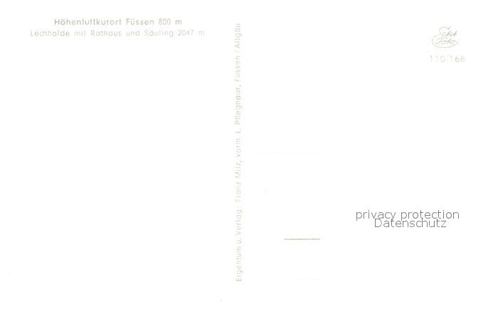 73272272 Fuessen Allgaeu Lechhalde Rathaus Saeuling postalisch nicht gelaufen Erhaltung siehe scans [KathaD81] KatCode: 11110009777129