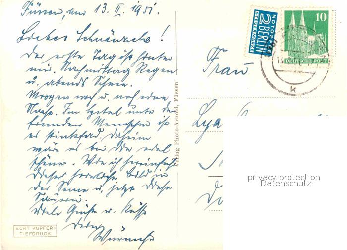 72776487 alte Postkarte Fuessen Allgaeu Malerwinkel postalisch gelaufen Erhaltung siehe scans [KathaD81] KatCode: 11110009777129