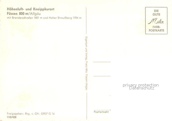 73721288 Fuessen Allgaeu mit Branderschrofen und Hoher Straussberg postalisch nicht gelaufen Erhaltung siehe scans [WerneD78] KatCode: 11110009777129