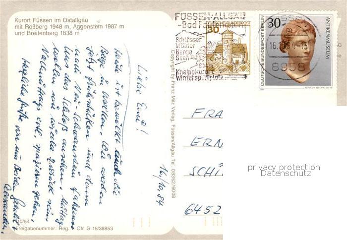 73065266 alte Postkarte Fuessen Allgaeu mit Rossberg Aggenstein und Breitenberg Fliegeraufnahme postalisch gelaufen Erhaltung siehe scans [FriedD77] KatCode: 11110009777129