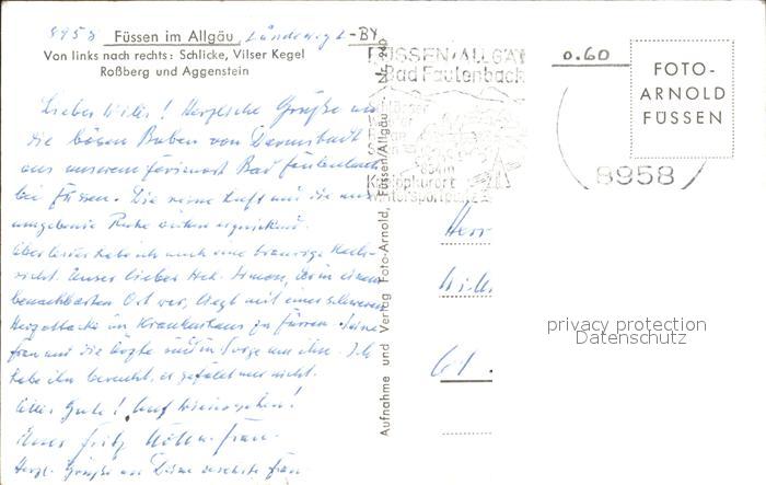 72317721 alte Postkarte Fuessen Allgaeu mit Schlicke Vilser Kegel Rossberg und Aggenstein postalisch gelaufen Erhaltung siehe scans KatCode: 11110009777129