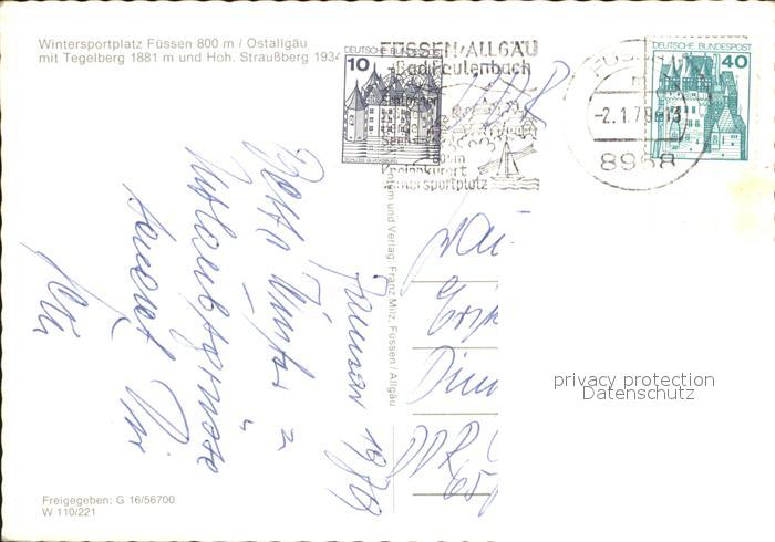 71927314 alte Postkarte Fuessen Allgaeu mit Tegelberg Straussberg postalisch gelaufen Erhaltung siehe scans KatCode: 11110009777129