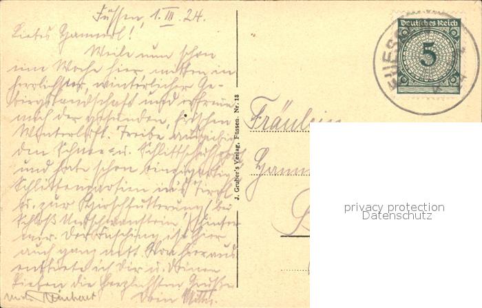 71837754 alte Postkarte Fuessen Allgaeu Ortsblick postalisch gelaufen Erhaltung siehe scans KatCode: 11110009777129